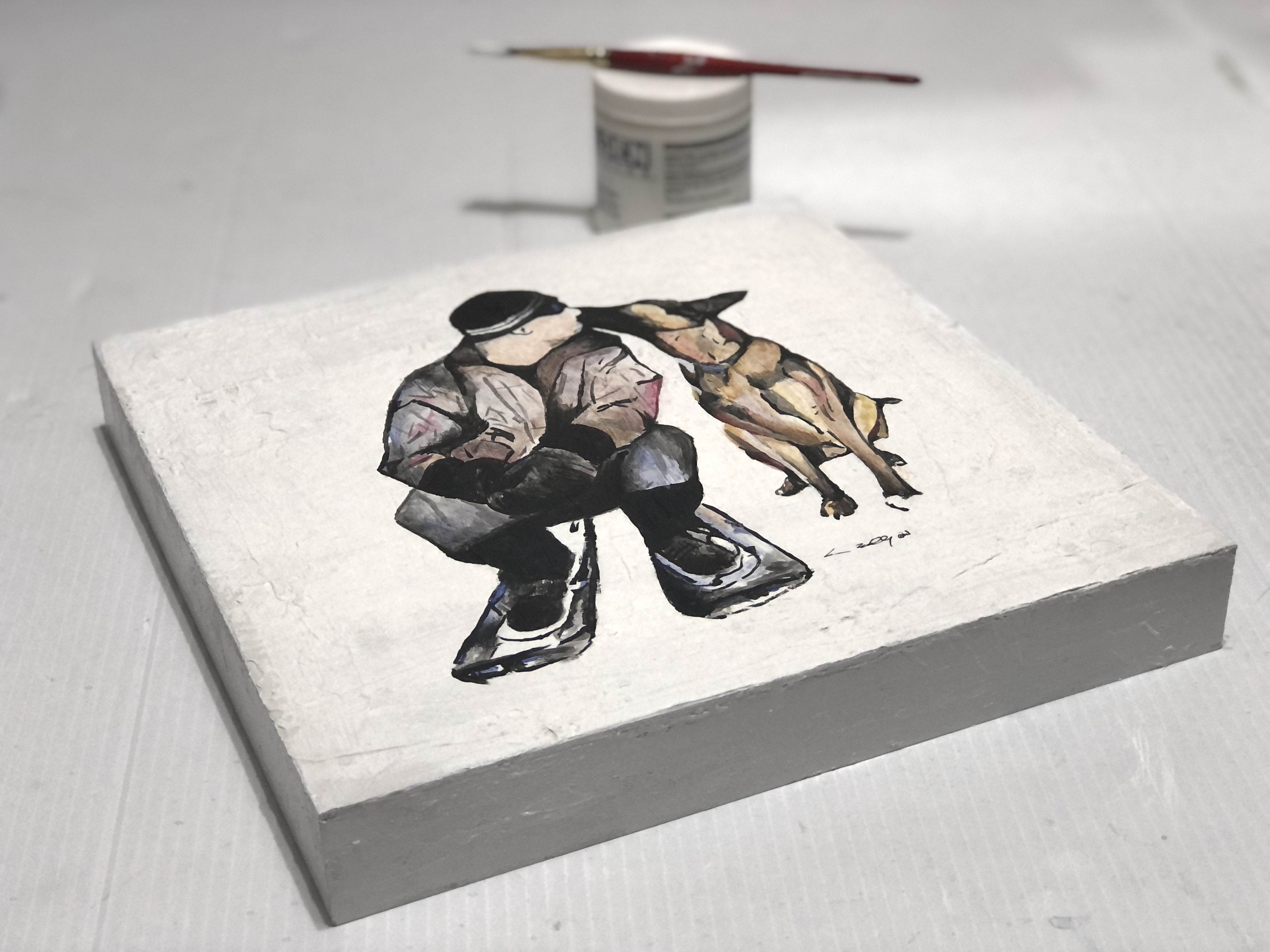 The process is expressive and emotional. Getting to know the subject to create a feeling that lets the paint fall – with ash telling stories through texture.